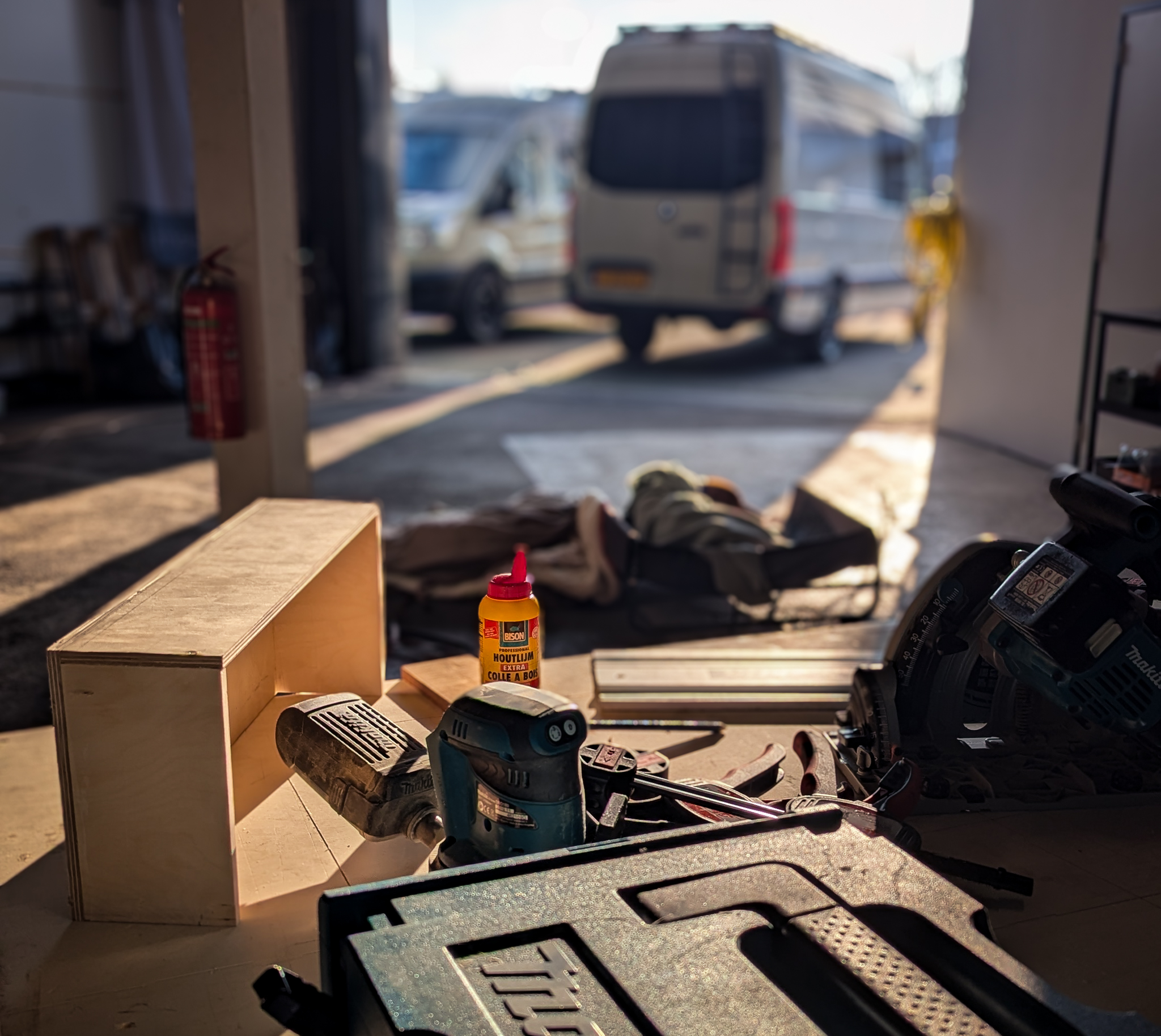 Ruime plekken, goed gereedschap, een helpende hand en alles wat je nodig hebt om jouw droomcamper te bouwen is beschikbaar. Daarnaast is het ook nog gewoon heel gezellig.