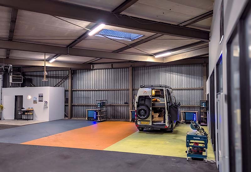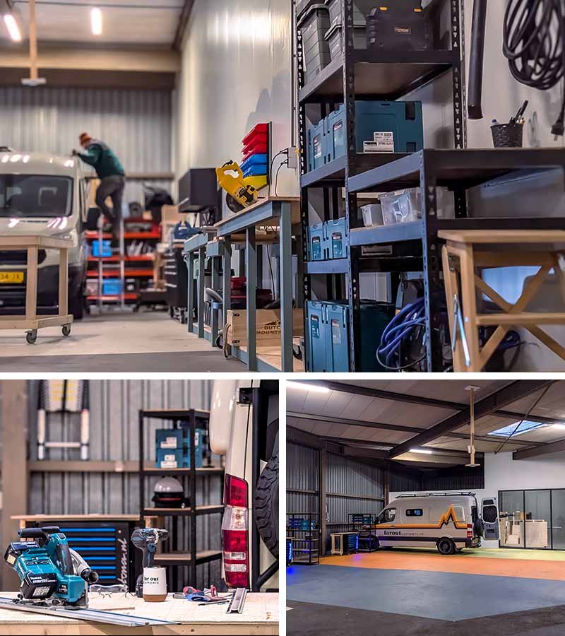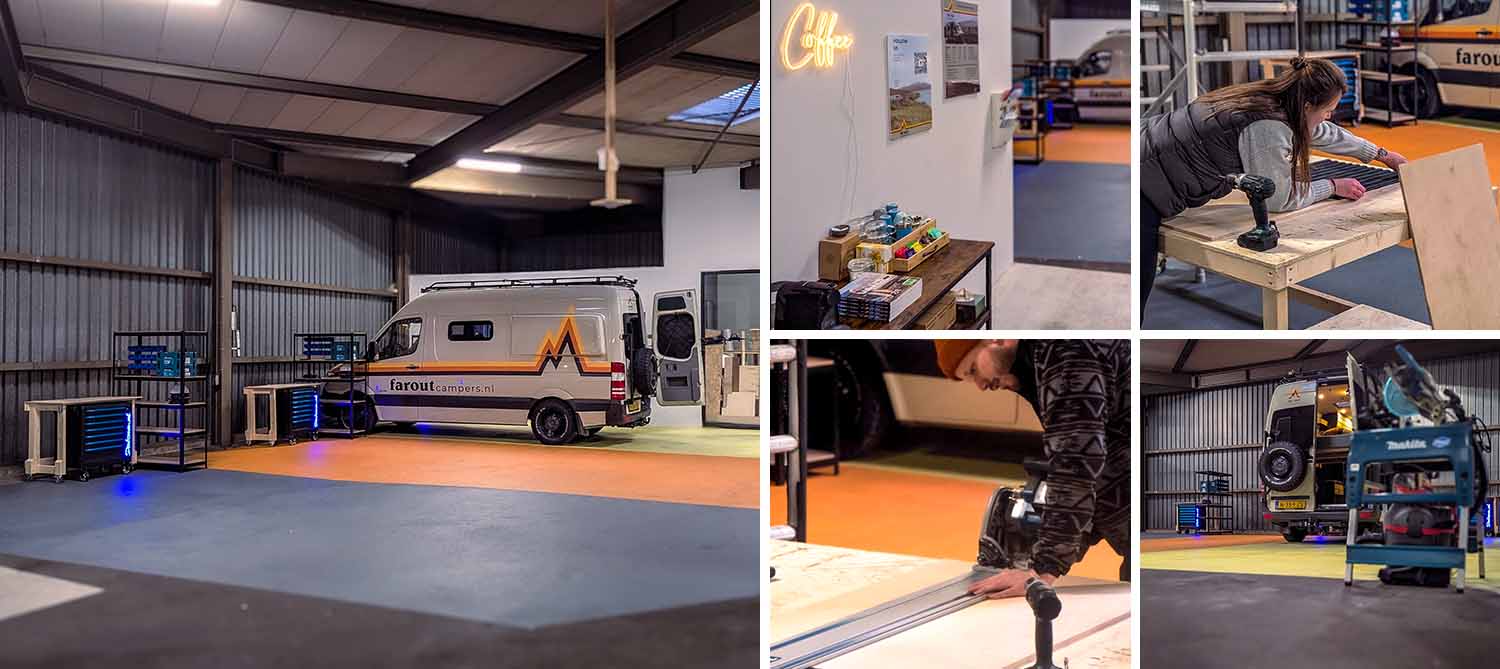 Een fijne werkplaats om aan je camper te klussen. Voldoende ruimte, al het gereedschap dat je nodig hebt. En ook nog eens heel gezellig!