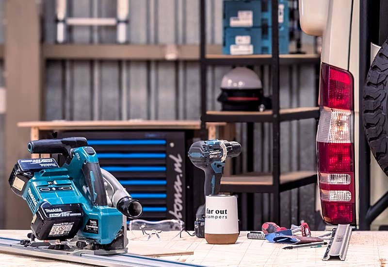 Alles wat je nodig kunt hebben tijdens het bouw van je camper is aanwezig en bij te huren.
